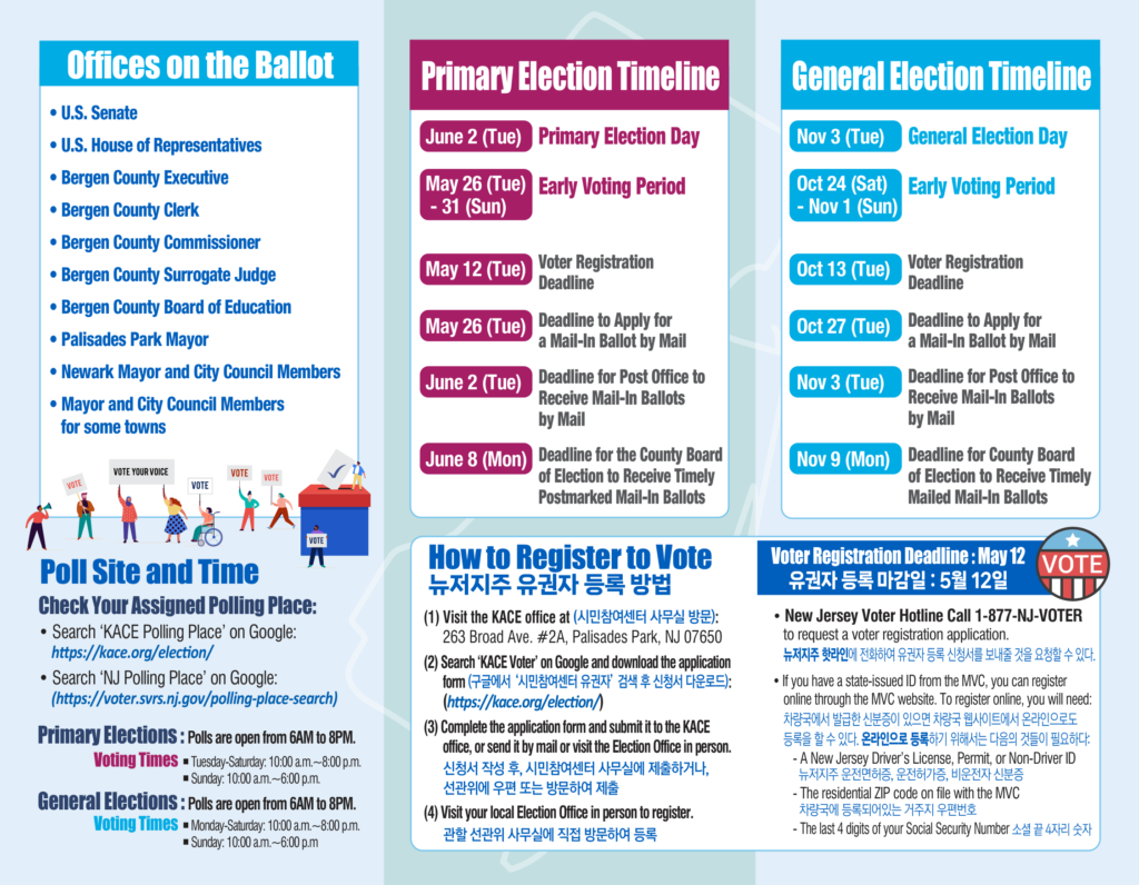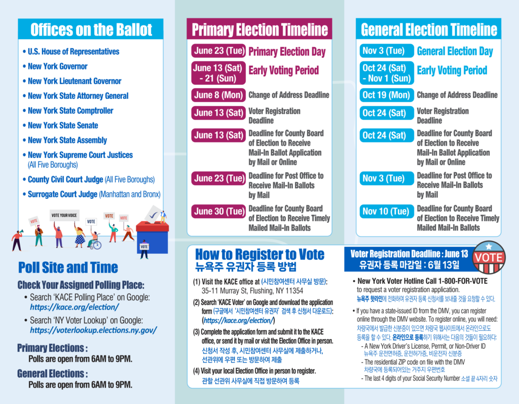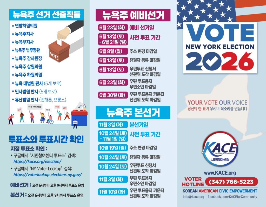 선거 참여를 위한 안내입니다. 도움이 필요하시면 시민참여센터 718-961-4117로 연락하시기 바랍니다. If you need further assistance to participate the election, please call KACE at 718-961-4117